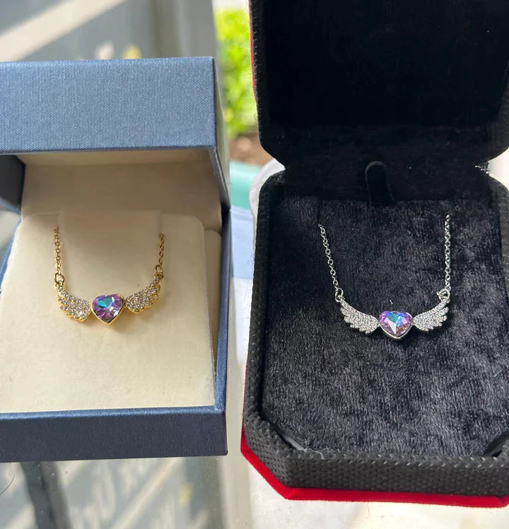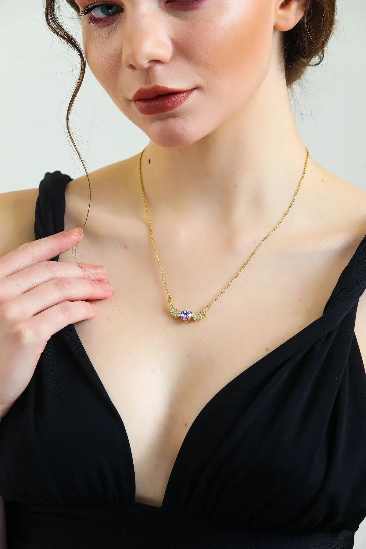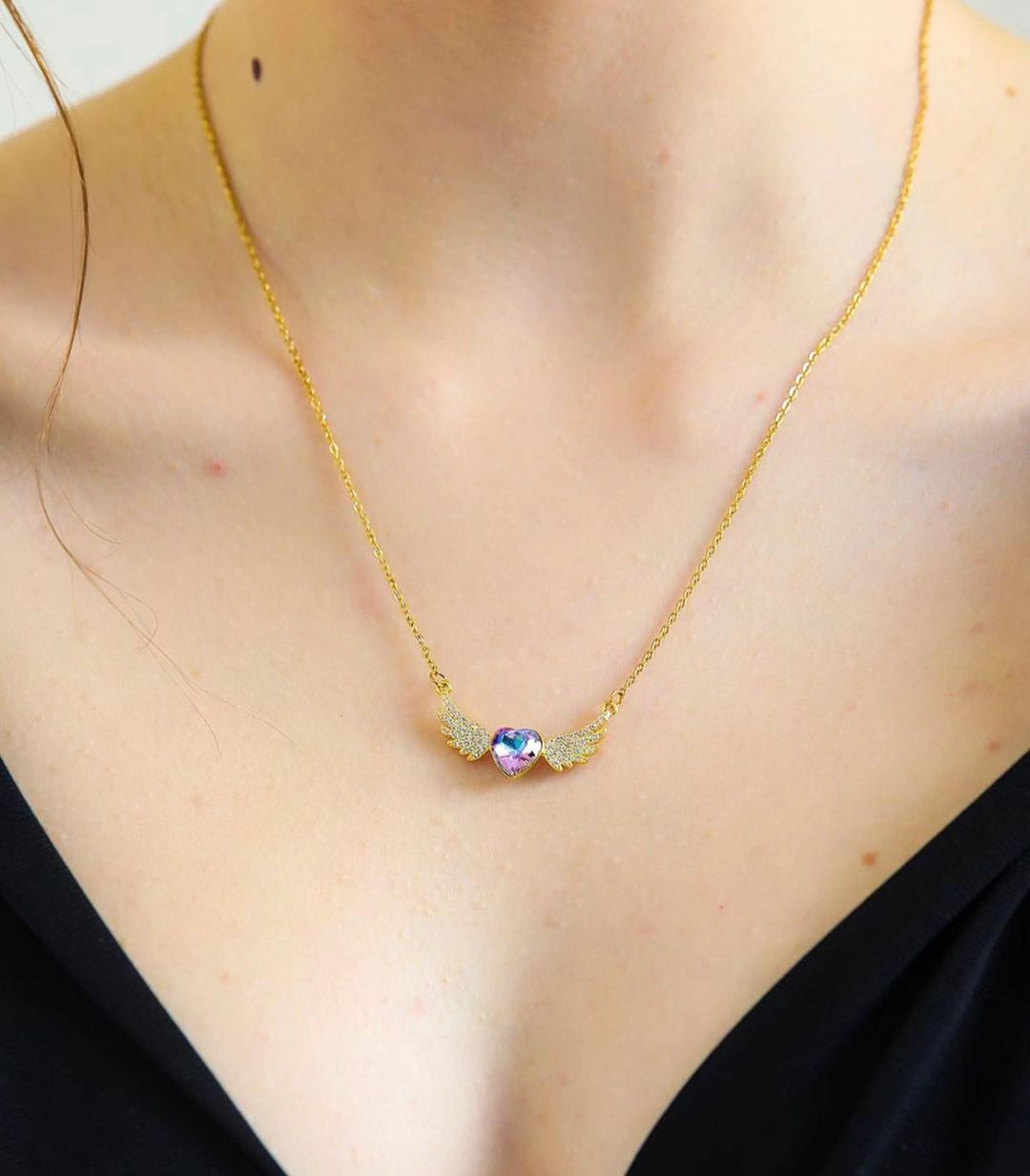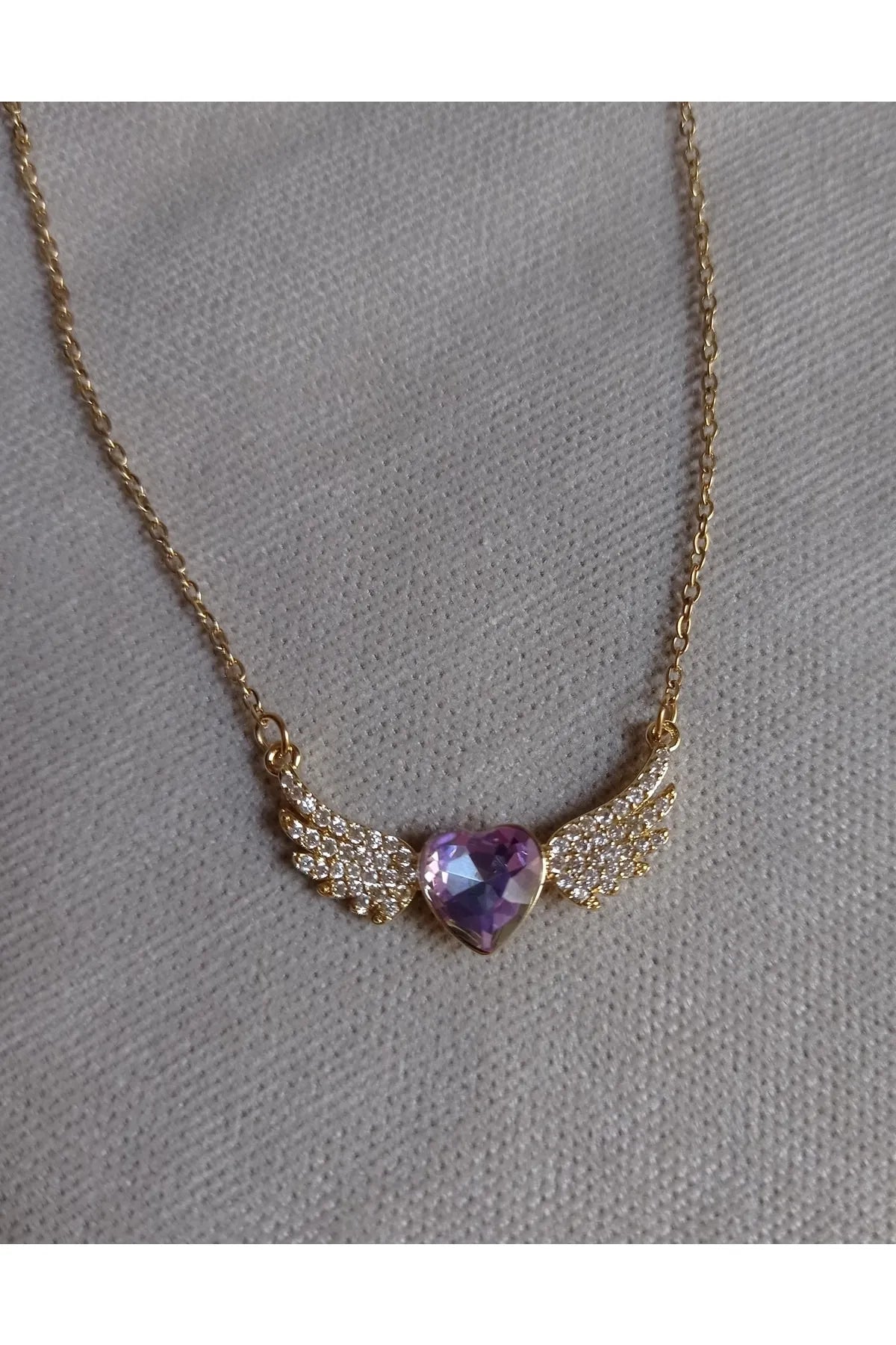 MELEK KANATLARINDA SAKLI ŞANS: KALP TAŞLI MELEK KANADI KOLYE