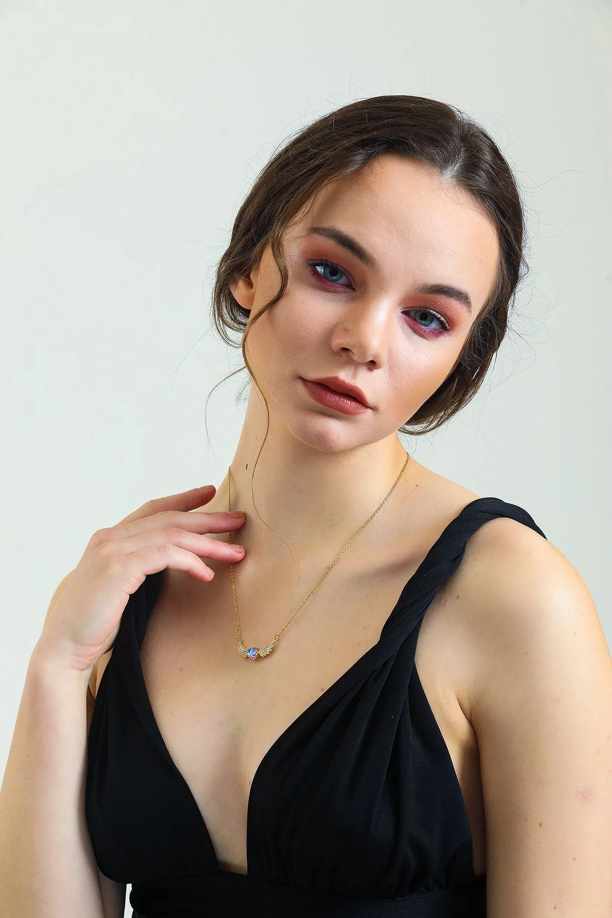 14 AYAR ALTIN KAPLAMA KALP TAŞLI MELEK KANADI KOLYE