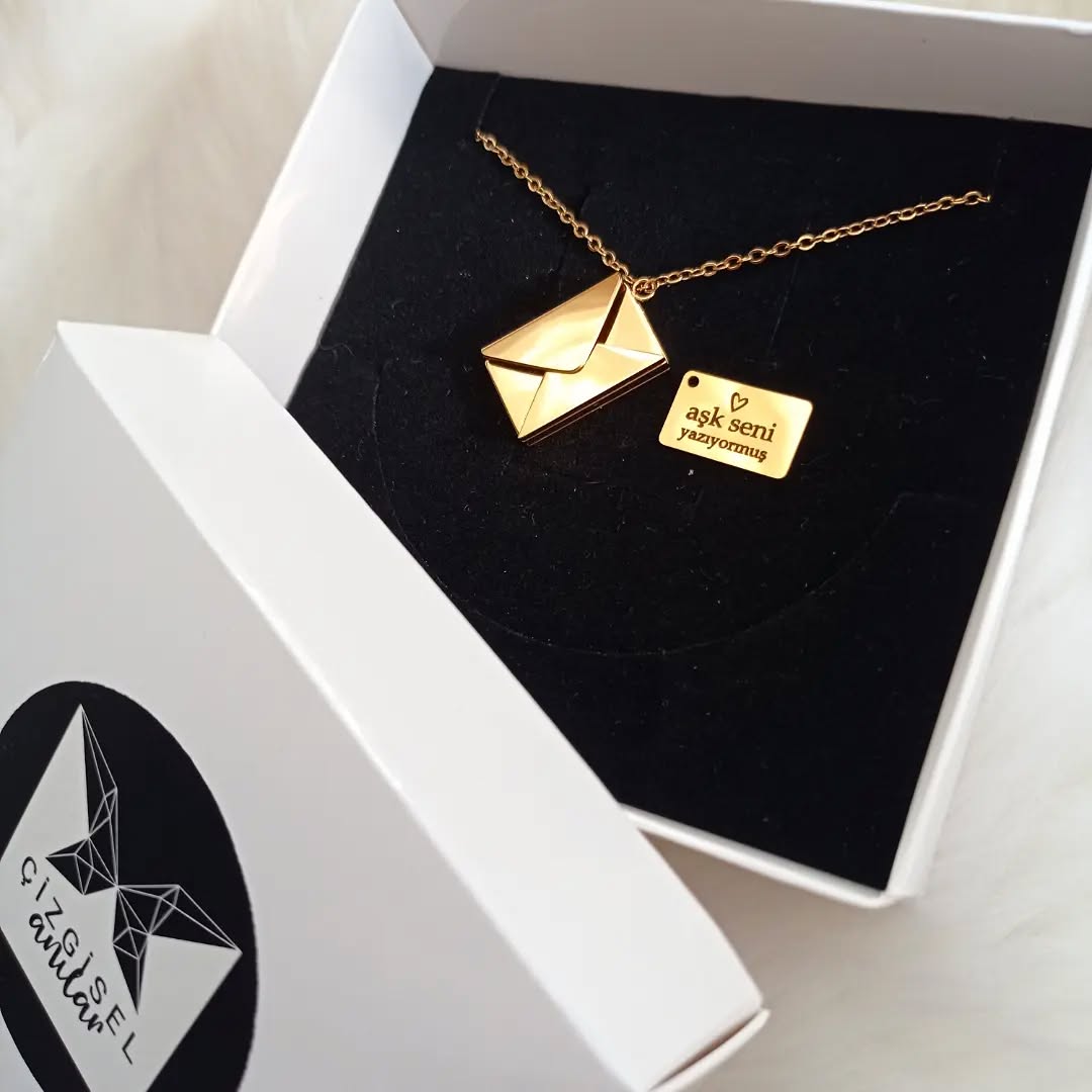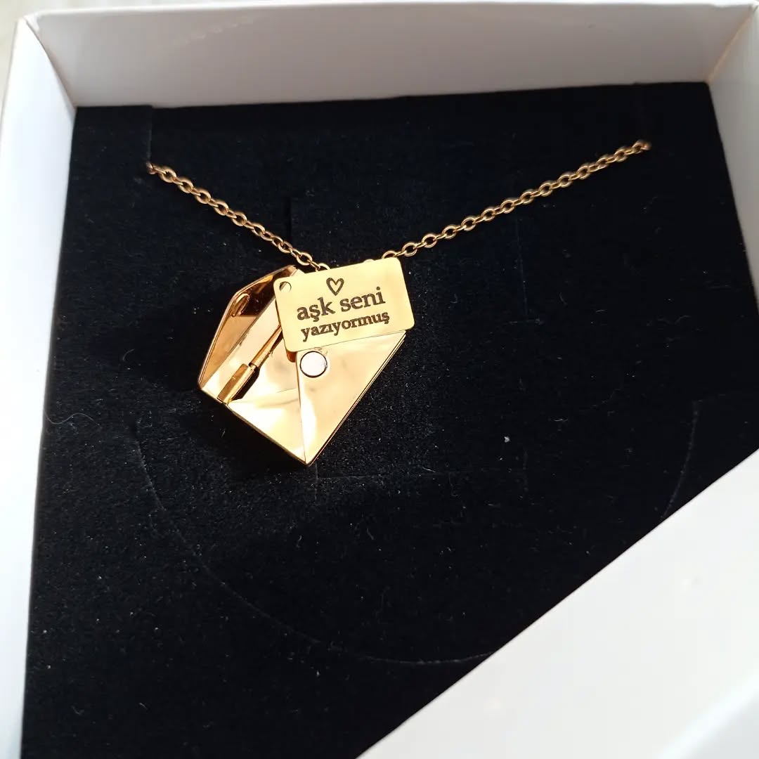 14 Ayar Altın Kaplama Mektup Kolye ( özel isim,tarih,not,şiir yazılı )