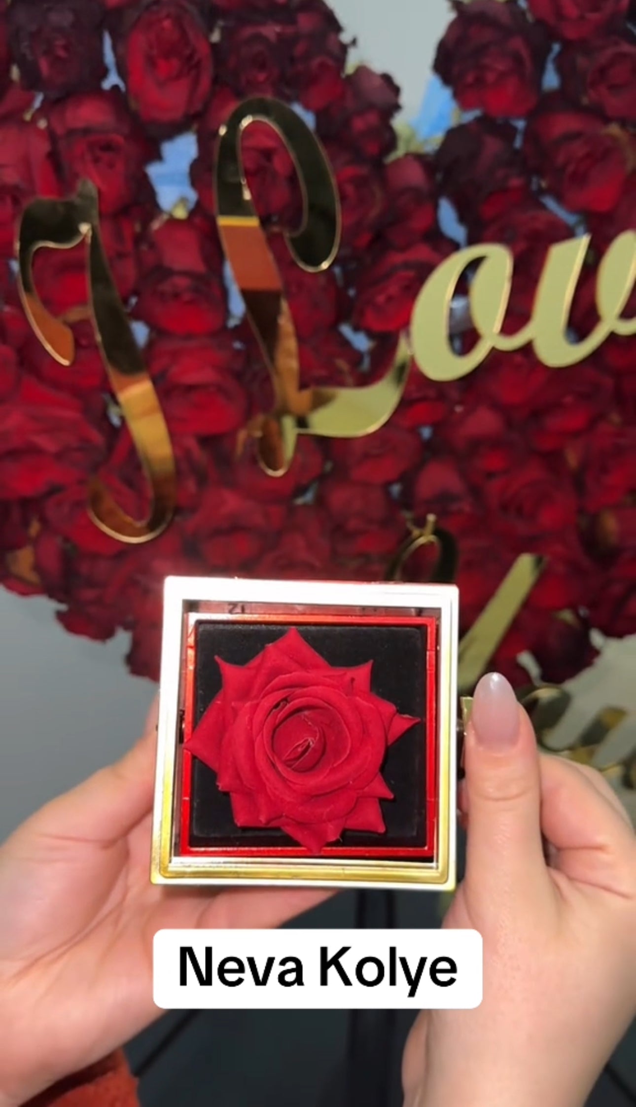 Dönen Güllü Kutuda Hearts Kolye + Yüzük
