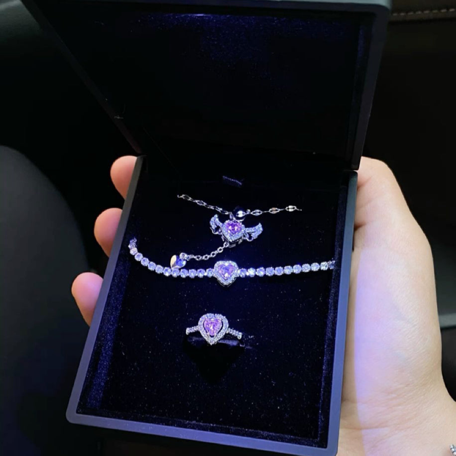 Işıklı Kutuda Gümüş Kaplama Sevgi Meleği 3'lü Seti ( Kolye + Yüzük + Bileklik )