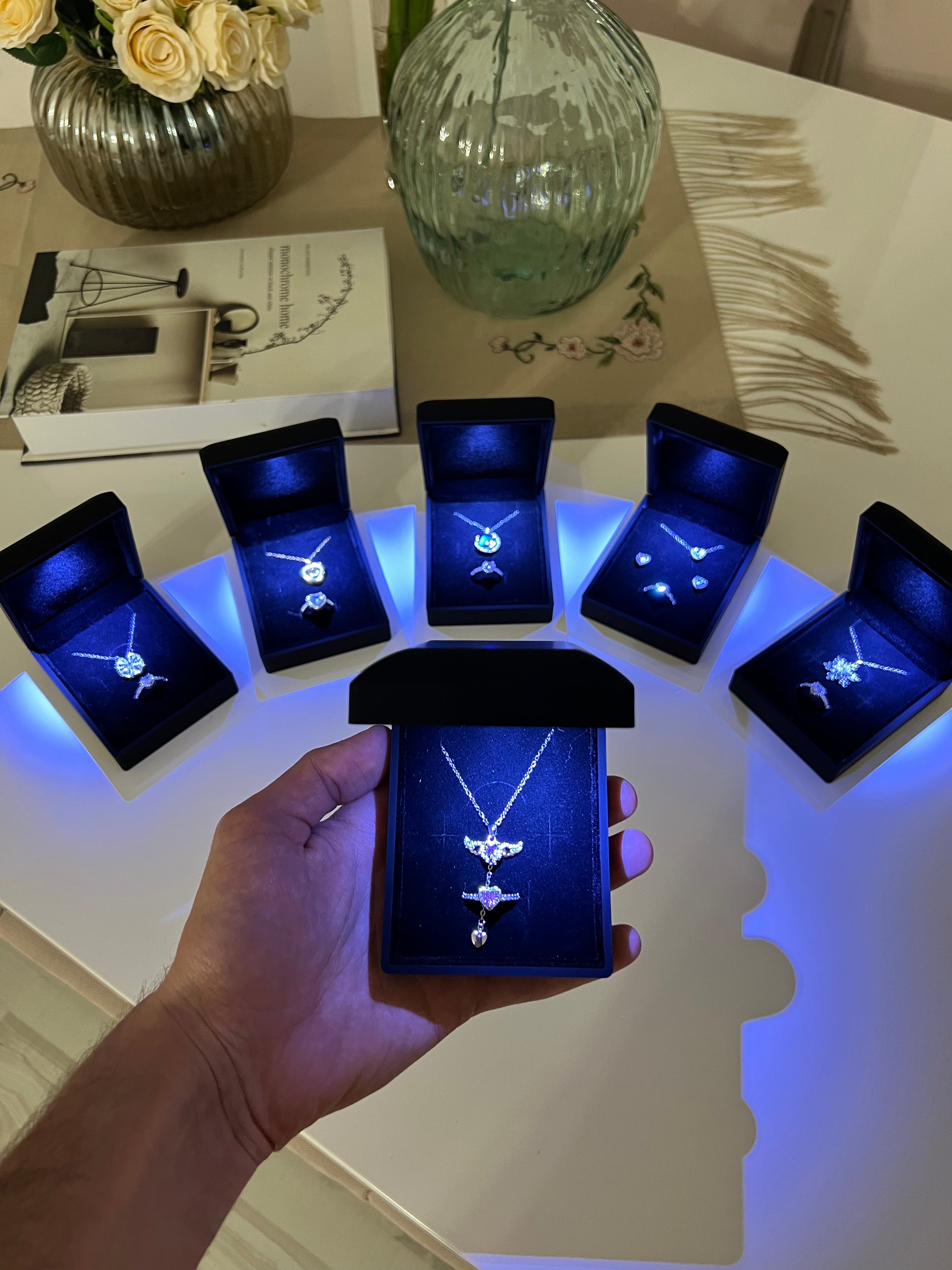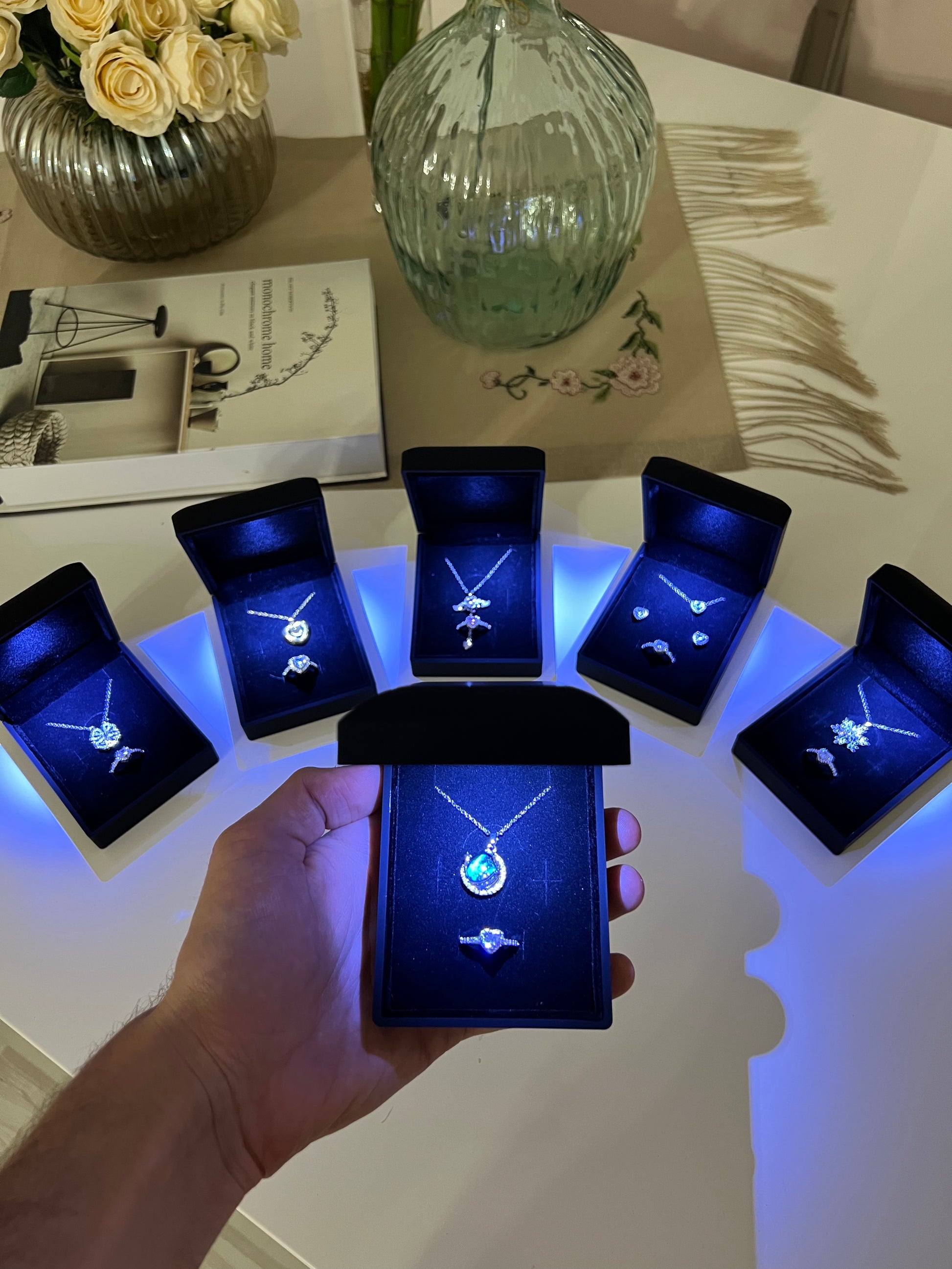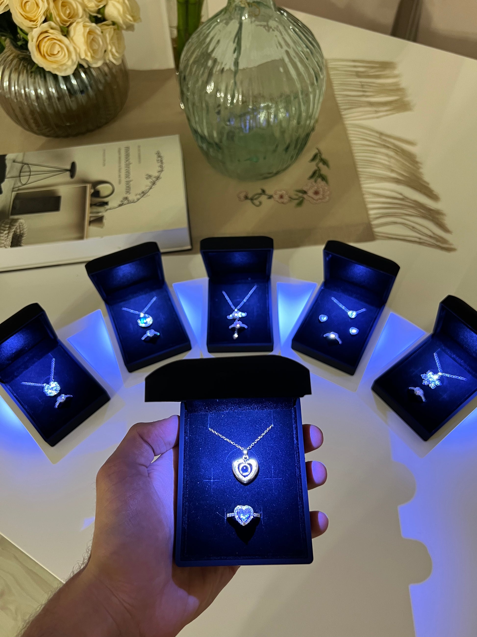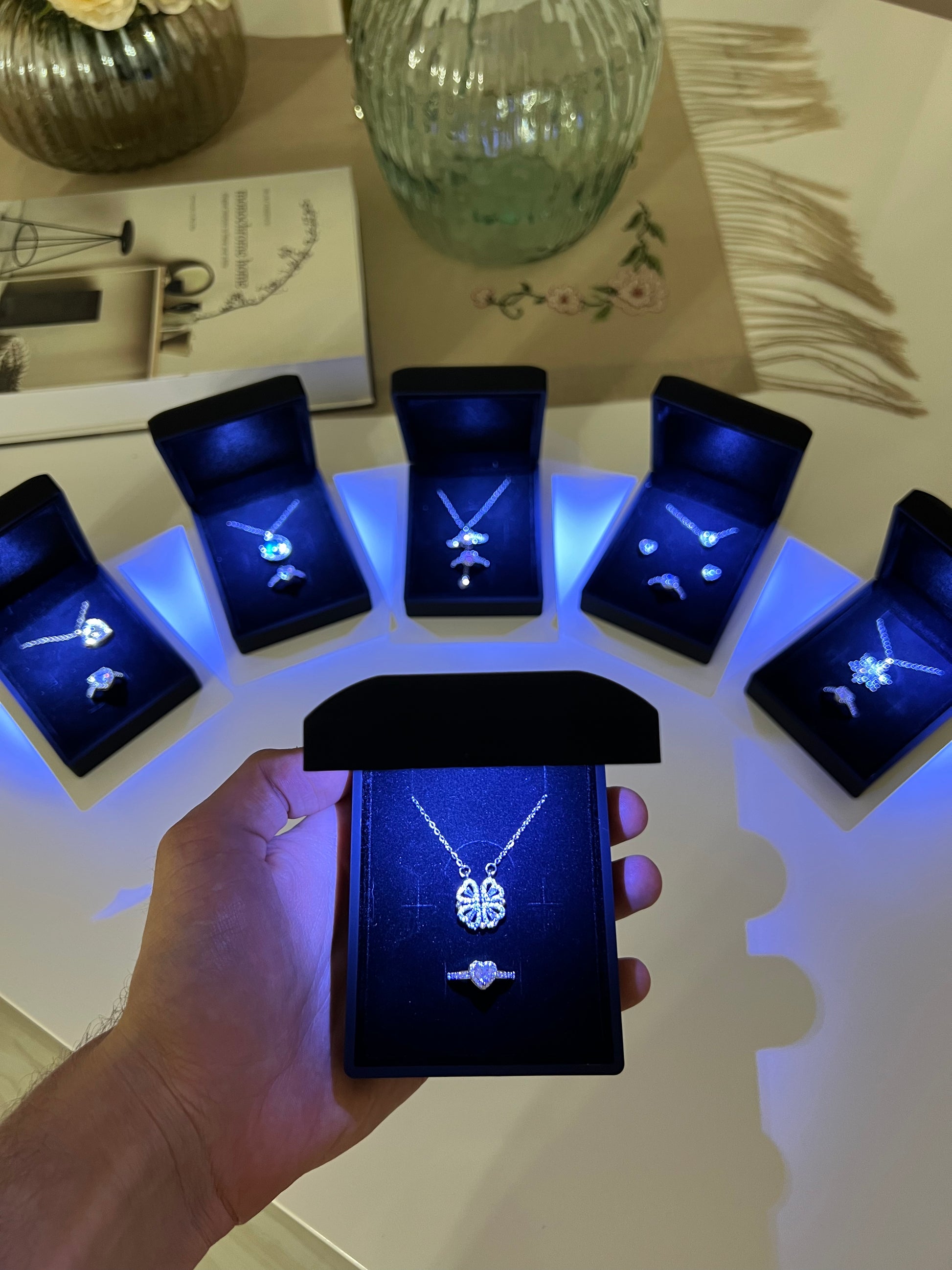 Işıklı Kutuda Kolye + Yüzük Setleri🌸