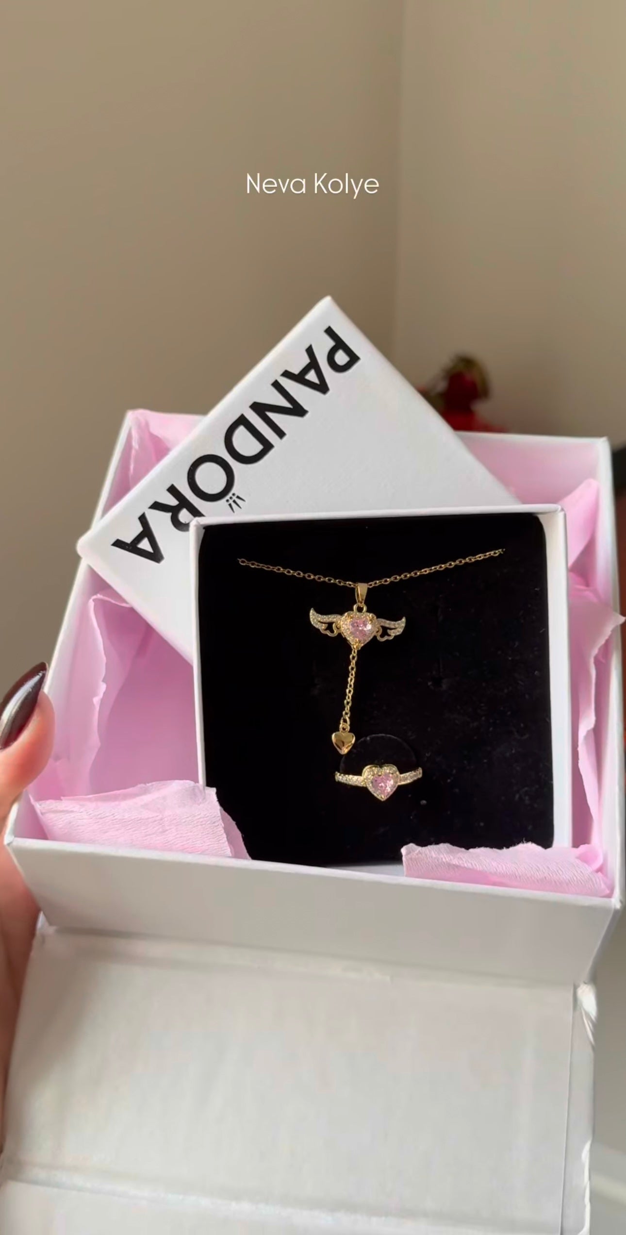 Özel Pandora Kutusunda Altın Kaplama Sevgi Meleği Kolye + Yüzük